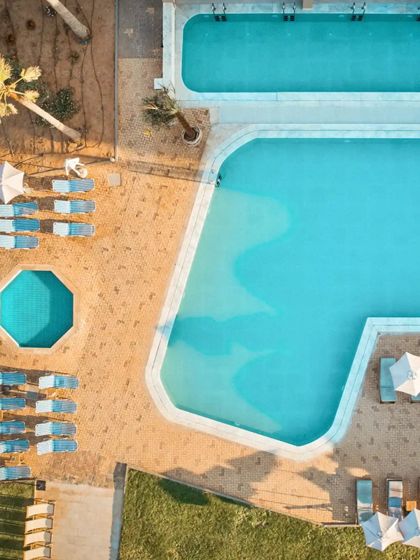 – medence napernyőkkel, nyugágyakkal